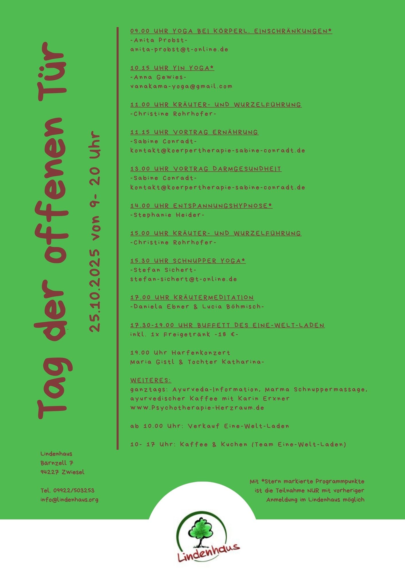 Terminvereinbarung unter info@lindenhaus.org